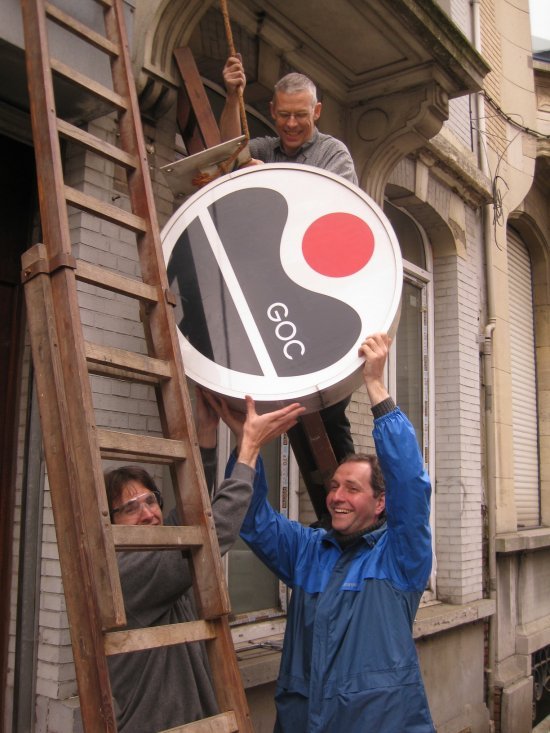 Het Roze Huis (met name hun medewerker Denis Bouwen) speelde ook een rol in het redden van een merkwaardig archiefstuk. Met toelating van de nieuwe eigenaars van het pand in de Dambruggestraat 204 werd de oude lichtreclame van het vroegere GOC (Gespreks- en Onthaalcentrum) verwijderd. Ze krijgt een plaatsje voor het nageslacht in de vertrekken van het Fonds Suzan Daniel. Het zal voor vele bezoekers van het oudste homocentrum van Antwerpen een geruststelling zijn dat deze lichtreclame, voor wie bij het zien ervan vaak een hele nieuwe wereld openging, niet in een of ander containerpark eindigt maar netjes afgestoft en bewaard wordt in de archieven. Op de foto: Cor Jespers, ex-medewerker van het GOC bevrijdt de lichtreclame die letterlijk en figuurlijk in handen komt van Bart Hellinck (rechts op de foto, zijn partner staat links) die namens het Fonds Suzan Daniel het archiefstuk in ontvangst nam.