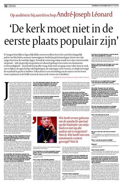 We hebben niet te doen met dementerende prelaten maar met slimme strategen. Léonard heeft een visie en wil die doordrukken. Tom Lanoye, die jaarlijks enkele maanden in Zuid-Afrika woont, zei eind december in een interview op de Nederlandse NOS: “Afrika is het slagveld waar ze de macht van de anglikaanse kerk willen overnemen. Er zijn vijf belangrijke bisschoppen overgegaan van de anglicaanse naar de katholieke kerk. Wat ze via Europa zeggen past in een strijd voor de rest van de wereld. Ze hebben Europa eigenlijk opgegeven.” Twee van deze bisschoppen Keith Newton (58) en Andrew Burnham (62) verlaten de anglicaanse Kerk uit protest tegen de bisschopswijding van vrouwen. Dat de katholieke kerk Europa heeft opgegeven klopt natuurlijk niet helemaal: de 600 miljoen euro die de kerk jaarlijks ontvangt van de Belgische staat kan nog altijd zeer nuttig besteed worden. Dat weet de paus ook.