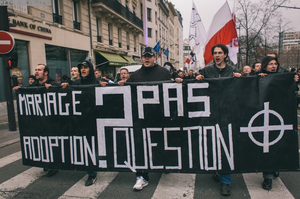 Stel je voor dat in België de katholieke kerk, het Vlaams Belang en een deel van VLD en MR een betoging organiseren tegen LHBT-rechten. Alexandra Colen, Gerolf Annemans, Mgr. Léonard en enkele liberale kopstukken op de eerste rij. Dat zou heel goed lijken op wat er zaterdag in Parijs gebeurde. Een massale antipride.