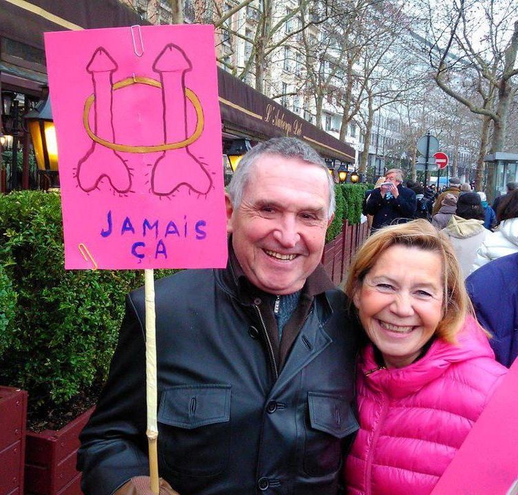 De organisatoren riepen om in een leuke outfit te komen, liefst met de kleuren ‘bleu, blanc, rose’ als variant op ‘bleu blanc rouge’, de Franse nationale driekleur. Grootste kop van jut waren de homo/lesbokoppels met kinderen. Het dogma dat twee mannen of twee vrouwen geen kinderen mogen opvoeden (ook een stokpaardje van het Vlaams Belang) werd de kreet van de dag. Anderen probeerden iets te maken dat op de lachspieren werkte. Je zal maar zoon of kleinzoon zijn van dit koppel. Het extreem-rechtse Front National speelt het spel subtiel: zijn beweren dat het voorstel dient om te verhullen dat de regering geen werk maakt van de sociale problemen.