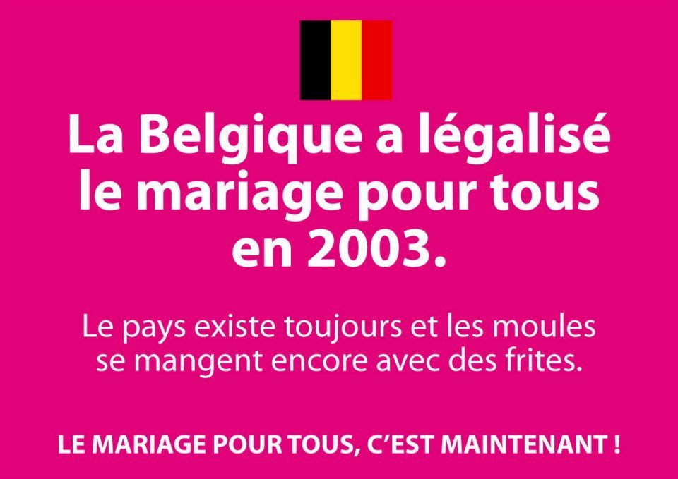 De Belgische LHBT-beweging toonde reeds haar solidariteit en was aanwezig op een eerdere manifestatie ter ondersteuning van de openstelling van het huwelijk. Op 27 januari zal dat opnieuw het geval zijn. Hopelijk zijn we met nog veel méér. Voor 23€ reserveer je een plekje op de bus vanuit Brussel. Meer info vind je hier. Hand in hand lopen door Parijs, samen met duizenden andere holebi’s en transgenders. Niet te missen.