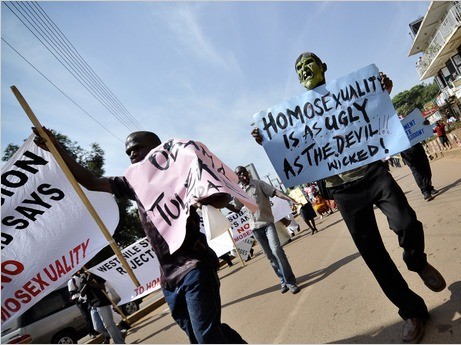 Ik ben intussen bijna 35 jaar actief in de LHBT-beweging. Het is de eerste keer dat ik een homofobe manifestatie van dergelijke omvang zie in West-Europa. In vele Afrikaanse landen komen kleinere manifestaties van die strekking regelmatig voor (foto: Oeganda). In België hebben de partijen die onze eisen bestrijden zeker het nodige gedaan. De MR van Louis Michel, het Vlaams Blok en de rechtervleugel van de CD&V (aangepord door Alexandra Colen) hebben tot op het laatste geprobeerd om de antidiscriminatiewet, de openstelling van het huwelijk en het recht voor holebikoppels om kinderen op te voeden tegen te houden. Maar nooit wisten ze daarvoor zoveel mensen te mobiliseren. Léonard slaagde er totnutoe niet in om zijn manifeste homofobie aan een breed publiek te verkopen. Waarom lukt dat in Frankrijk wel?