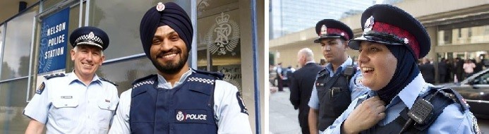 Inclusieve, dynamische neutraliteit: je sluit in principe niet uit. Alles wat bij manier van spreken te zien is in de lokettenzaal mag ook achter het loket. Je integreert de veelkleurigheid en de multiculturaliteit zoals je die in het straatbeeld ziet in het overheidsbeleid. Er blijven evidente beperkingen, zoals geen publiciteit op de kleding. De publieke dienstverlening probeert zoveel mogelijk mensen het gevoel te geven dat ze erbij horen. De overheid kan hier een voorbeeldfunctie vervullen, zoals bij deze agenten in Canada (rechts op de foto) en Groot Brittannië.