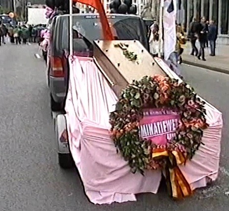 In 1998 voerde het Roze Aktiefront (RAF) tijdens de Pride een actie rond het wetsvoorstel Willems-Landuyt dat in mei 1996 was ingediend met de bedoeling tot een wet te komen die de discriminatie omwille van seksuele geaardheid verbiedt. De tekst werd de inzet van een hopeloos getouwtrek tussen SP.A en CD&V. De CD&V won het pleit en het wetsvoorstel dreigde begraven te worden. Het RAF had een groot bord gemaakt met daarop “De regering begraaft anti-discriminatiewet” gevolgd door een grote doodskist. Een nep-kardinaal en pastoor deelden overlijdensberichten uit. De kist werd geflankeerd door twee vlaggen: eentje van de SP.A en eentje van de CD&V. Uit grote luidsprekers klonk het requiem van Mozart. En neen, SP.A en CD&V waren niet blij met deze ingetogen maar duidelijke boodschap. Maar zo werd voor iedereen duidelijk dat politici nu en dan een schop onder hun kont nodig hebben. De Standaard blokletterde: “Roze feest met zwart lintje”.