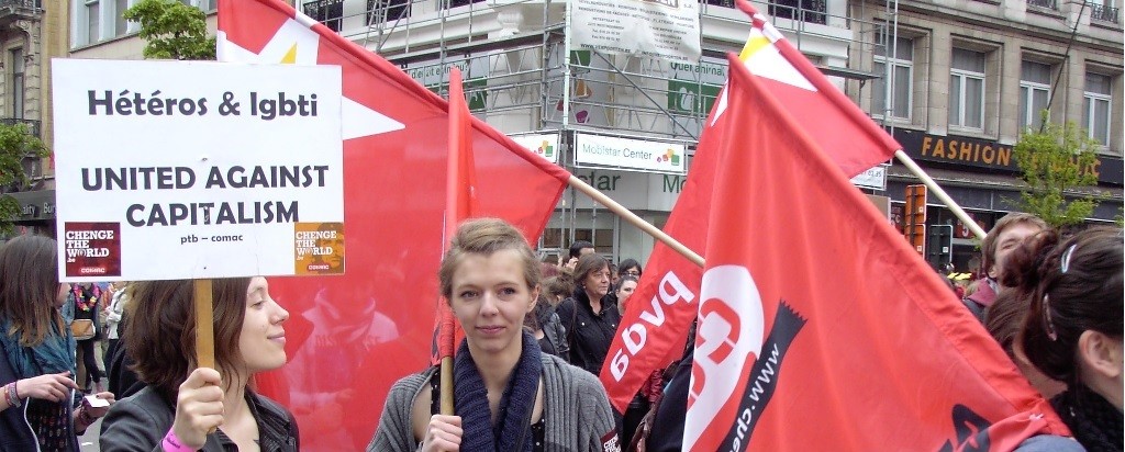 Wie heeft er belang bij dat mensen in dezelfde volkswijken elkaar haten? Dat Walen en Vlamingen tegen elkaar worden uitgespeeld? Dat we een rassenstrijd voeren in plaats van een klassenstrijd? Enkel de klasse van de superrijken heeft daar belang bij. Als de NVA ons voorstelt om snelrecht (een vorm van rechtspraak die enkel tegen de lagere bevolkingslagen gebruikt wordt) toe te passen tegen homofoob geweld is dat geen goeie zaak voor ons. Zoals het ook geen goeie zaak is als Di Rupo het mogelijk maakt om GAS-boetes te geven aan kinderen en jongeren. Het maakt de daders en hun ouders nog armer. Wat die jongeren nodig hebben is degelijk onderwijs en vooruitzicht op werk. Maar daarin faalt het systeem. De werkloosheid en uitzichtloosheid nemen toe met de economische crisis en treffen in de eerste plaats de ‘allochtonen‘: Volgens het Minderhedenforum, een koepel van etnisch-culturele verenigingen, kom dit vooral omdat allochtone werknemers een slechter statuut hebben (uitzendwerk en tijdelijke contracten). Bovendien werken zij vaak in sectoren die het zwaarst getroffen zijn zoals de metaal- en textielsector. Werkloosheid en armoede zijn bijna de norm zijn in de volkswijken. Er is racisme bij de interimkantoren en in het uitgaansleven. Datzelfde uitgaansleven waar dan ook homo’s in mekaar geslagen worden. Slechte leefomstandigheden maken mensen agressief. De toename van geweld op straat komt er niet vanzelf, maar gaat gepaard met de economische crisis. Een crisis waar de gewone mensen geen schuld aan hebben, of ze nu hetero, holebi of trans zijn.