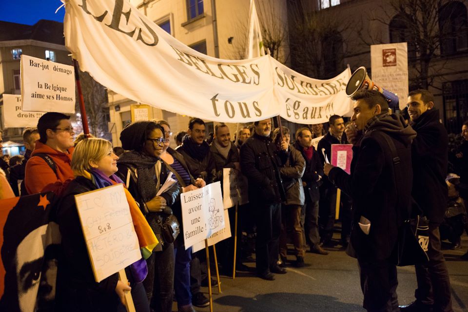 Woensdag 20 maart: het bezoek van Frigide Bargot, boegbeeld van de anti-homohuwelijkcampagne van rechts en extreem-rechts in Frankrijk, krijgt een warm onthaal van LHBT-actvisten bij haar bezoek aan Brussel. De solidariteit vanuit (vooral Franstalig) België met de strijd voor de openstelling van het huwelijk in Frankrijk is één van de hoogtepunten van 2013.