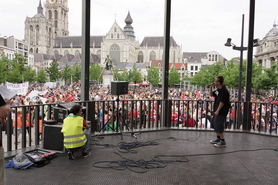 Woensdag 1 mei: Ik spreek de deelnemers toe op het solidariteitsfeest in Borgerhout. Het feest is een reactie op het idee van de extreem-extreem-rechtse NSA (Nationaal-Solidaristische Actie, niet te verwarren met de Amerikaanse spionagedienst) om op de dag van de arbeid een manifestatie te houden tegen de PVDA. Eerst mocht dat van Bart De Wever. Onder druk van het protest trok hij zijn toelating in. Buurtbewoners en linkse mensen nemen op 1 mei het plein over.