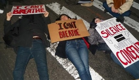 Intussen werd de wereld geconfronteerd met een volgend racistisch incident: ook de politieman die verantwoordelijk is voor de dood van de zwarte New Yorker Eric Garner (hier op de foto met zijn gezin) gaat vrijuit. Demonstranten trokken de straat op en gebruikten zijn laatste woorden (“I can’t breath”) als een scherpe aanklacht tegen het politiegeweld.