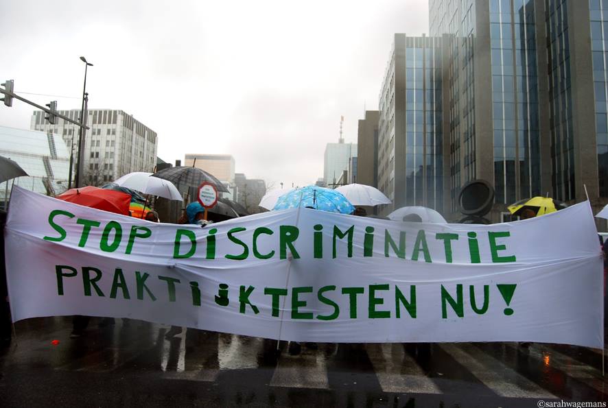 Uit het opiniestuk: “Praktijktests en mystery shopping zijn nu eenmaal de enige geschikte instrumenten om de naleving van de antidiscriminatieregelgeving doorheen de verschillende fasen van het verhuurproces te controleren.” Deze eis was ook duidelijk te zien in de parade.