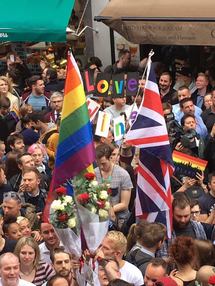 Vandaag zullen in Compton Street (foto) – het hart van de Holebi- en transgendergemeenschap in London – Holebi’s, transgenders en hetero’s arm in arm staan ter nagedachtenis van wat in Orlando gebeurde. Laat dit een uiting zijn van solidariteit en een afwijzing van zij die haten.